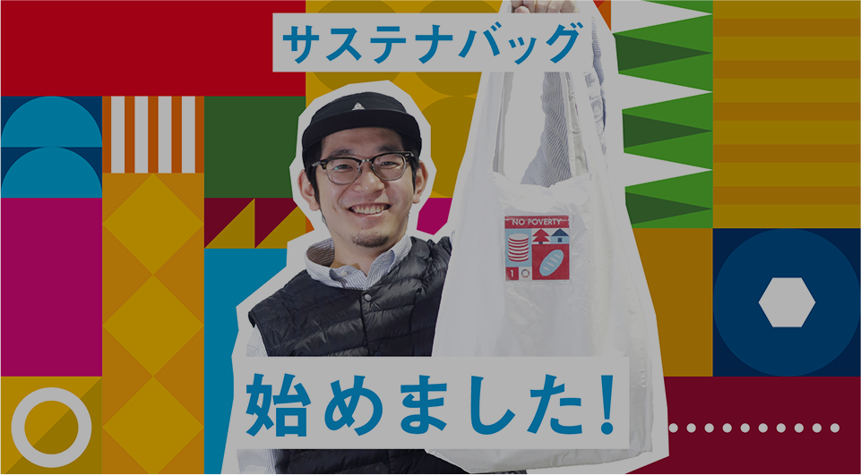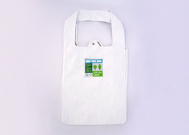 社員全員のSDGs意識発揚と実践促進のためのシンボルアイテムとして、サステナ・バッグをオリジナルデザイン&制作し、日々の業務に活用しています。