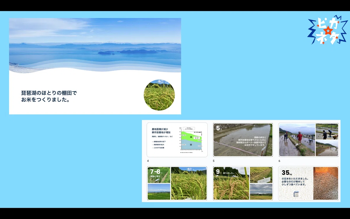 毎週全社員が集まる朝会(AM会と呼んでいます)で、ピカッと輝くいいなと思った出来事や研究してみたいなと思わせる物事をみんなに披露する時間がピカネタです。
