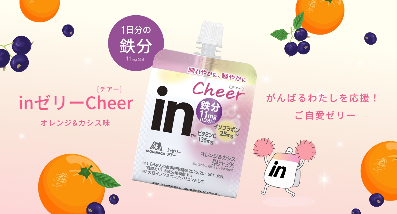 森永製菓株式会社から、1日分の鉄分11mg※を摂取できる新商品「inゼリー Cheer」が登場。