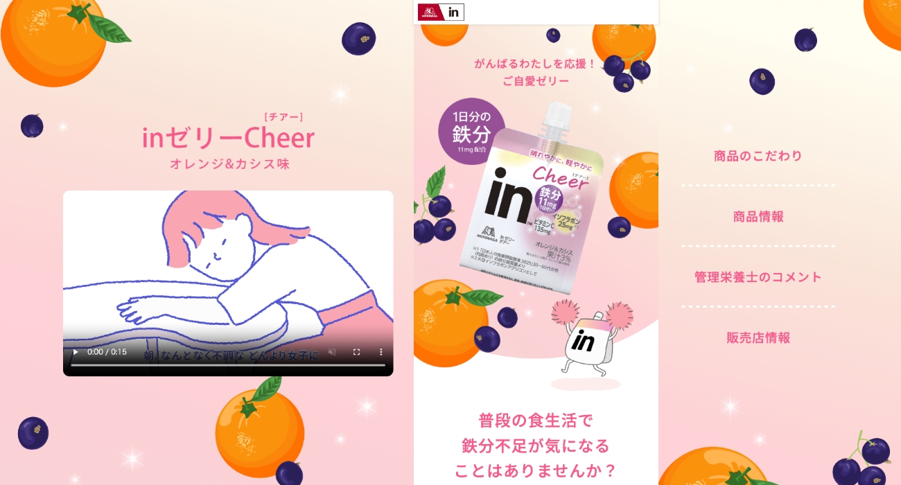 森永製菓の新商品「inゼリー Cheer」のLPとサイネージを、戸板女子短期大学との産学連携で制作
