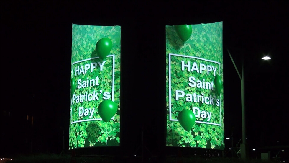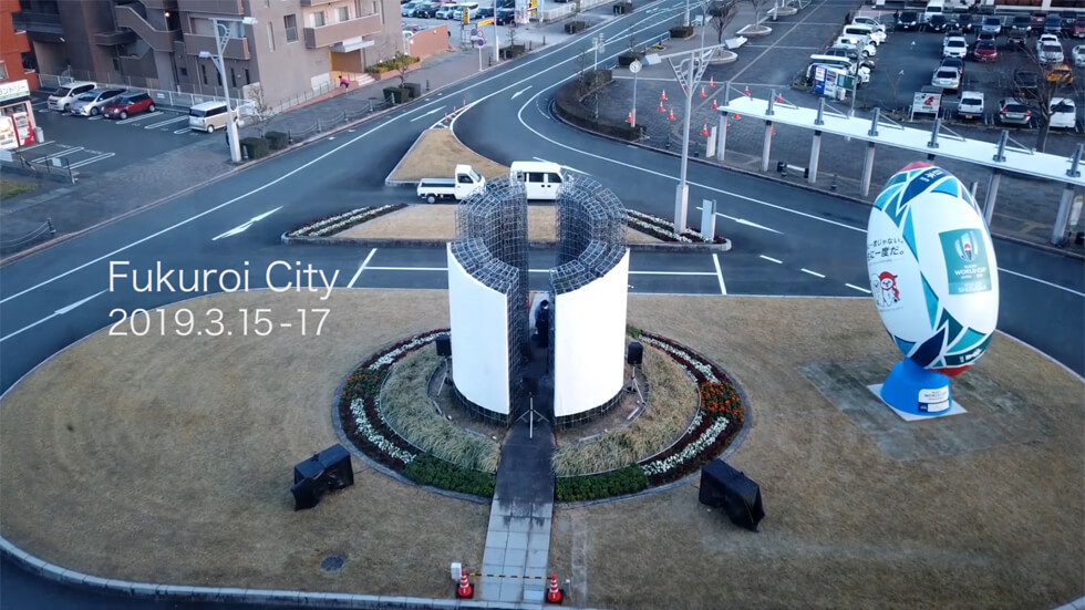 袋井市のPR映像と2019年開催のラグビーW杯PRの2本の映像を、愛野駅前にあるモニュメントを利用したプロジェクションマッピングとして上映しました。 袋井市のPR映像は、2020東京オリンピックにてアイルランド選手団のベースキャンプ地に選定されたこともあり、市をあげて交流ムードを盛り上げると共に、市のPRも兼ねた内容になっています。 ラグビーW杯PRの映像は、2019年のW杯が袋井市のエコパスタジアムで行われることが決定し、そこで行われる8ケ国の試合のPR動画となっています。