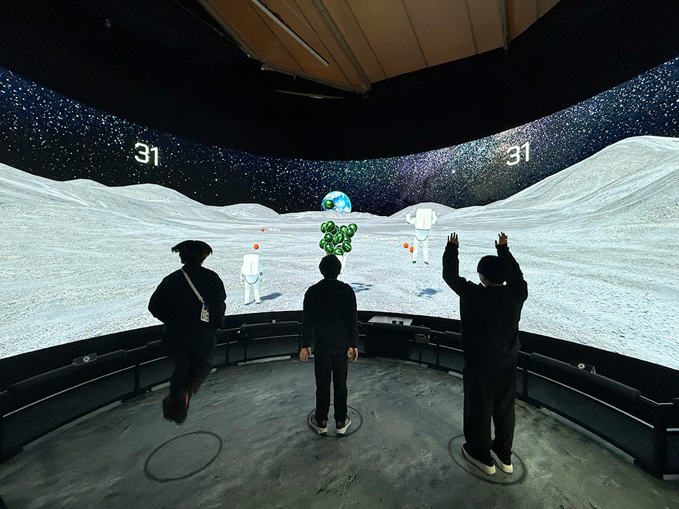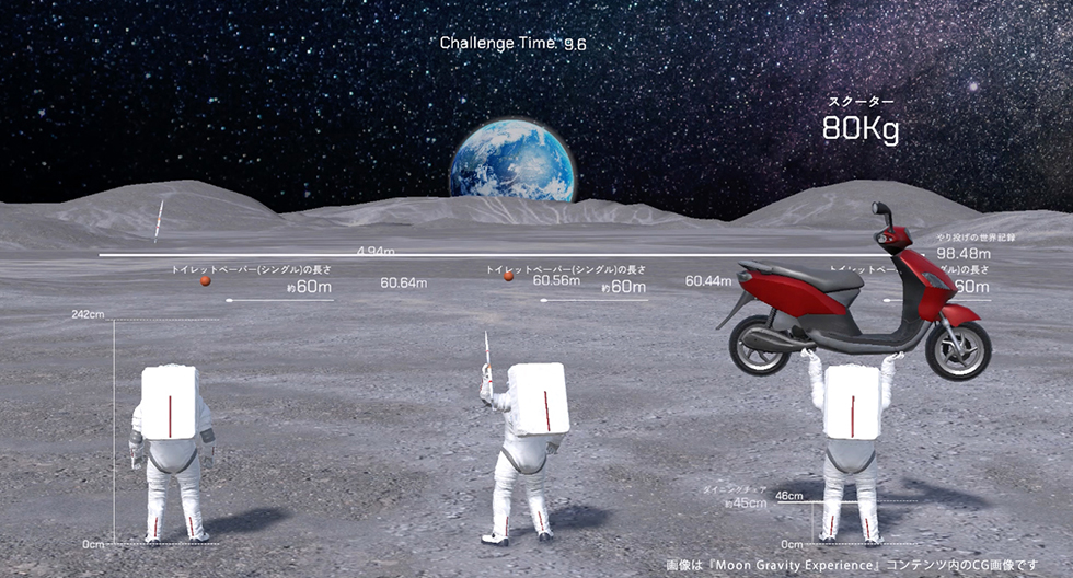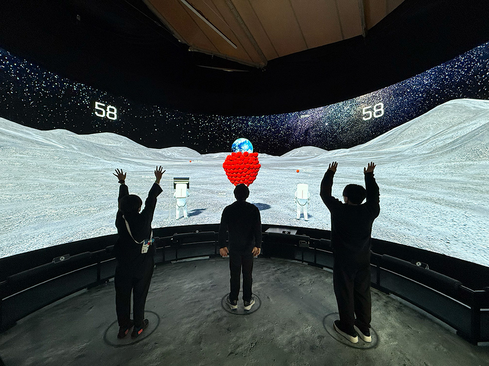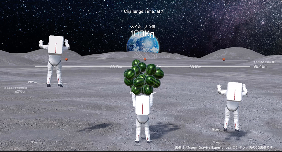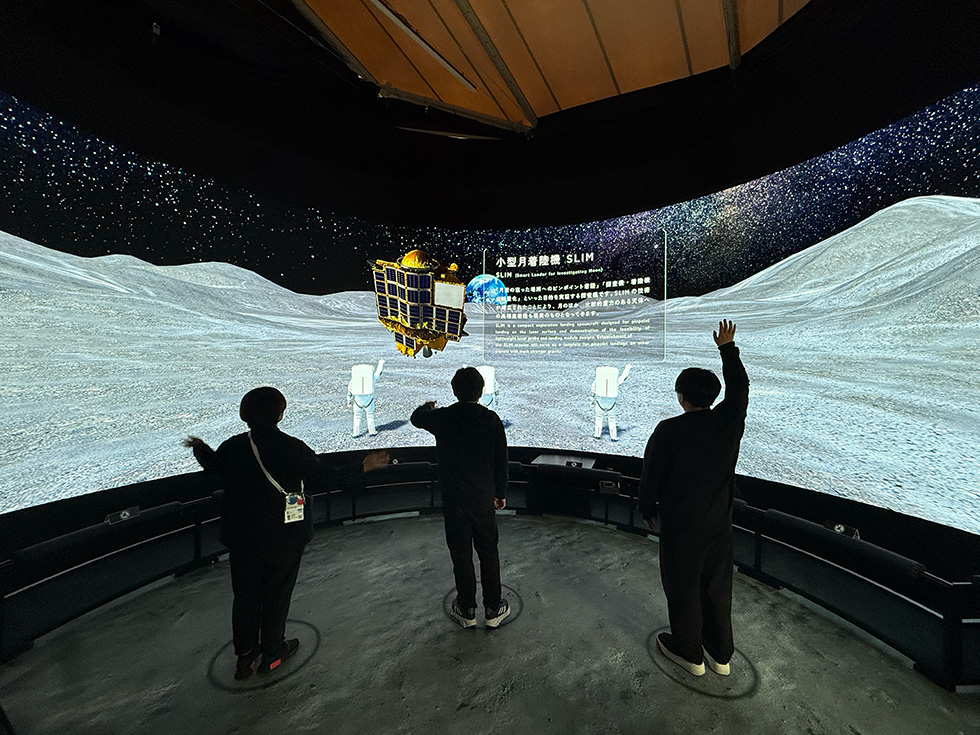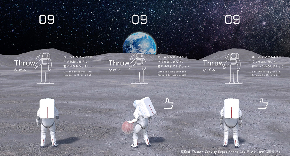 ⚪︎『Moon Gravity Experience』 『Moon Gravity Experience』は、地球の重力の約1/6とされる月面の重力を全身で体感できる、体験型インタラクティブコンテンツです。 幅10m・高さ3mの高精細な大型LEDカーブビジョンに広がる没入感あふれる月面空間では、体験者の動きが宇宙飛行士アバターと連動します。 体験者が行う「なげる」「ジャンプ」「もちあげる」といったジェスチャーと連動した宇宙飛行士アバターの動きを通して、月面重力下でのアクションを疑似体験することができます。 また、動作の大きさによって投げる距離やジャンプの高さが変化し、それに合わせてスポーツの世界記録や身近なモノの長さ・高さといった情報が表示されるため、 月と地球の重力の違いをより具体的に実感することができます。 さらに、複数人で同時に同じ動きをすると、迫力ある特別演出が発現する仕掛けも用意しました。 当コンテンツはJAXA常設展示ブースで、半年間(土日祝/夏休み期間のみ)提供され、約8600人に体験いただきました。 ⚪︎宇宙への興味を喚起する体験設計 本コンテンツでは、月面の重力という非日常の感覚を、誰もが直感的に楽しみながら学べる体験として届けることを目指しました。 実際に体を動かすアクション設計にすることで、知識として理解するだけでなく、身体的な実感を通して重力の違いを“感じて学べる”体験に昇華しています。 また、世代や国籍を問わず誰もが迷わず参加できるよう、ピクトグラムやアニメーションを活用したユニバーサルなUIデザインを採用。 車椅子の方も楽しめるインクルーシブな設計に加え、動作に応じて身近なモノの大きさを表示するなど、学びに繋がる情報デザインにも工夫を凝らしました。 さらに、3人で同時に同じアクションをすると宇宙空間にJAXAの小型月着陸実証機SLIMが出現したり、巨大な隕石が出現したり、やり投げ世界記録に挑戦できるイベントが発生するなど、特別でダイナミックなイベントが用意されています。 こうした設計を通じて、宇宙や月に対する興味や好奇心を喚起することを狙いとしました。 ⚪︎『体験』×『SNS』 また、弊社では同展示の公式SNSにおいて、「運用方針の提案」「投稿カレンダーの作成」「現地での撮影・編集」「投稿テキストの作成」など、 万博におけるJAXA展示を盛り上げるSNS運用に関するコンサルティングも対応。 体験内容を弊社で細かく共有できる体制なので『体験』×『SNS』 をクロスさせた、弊社ならではの強みを生かした企画制作となりました。