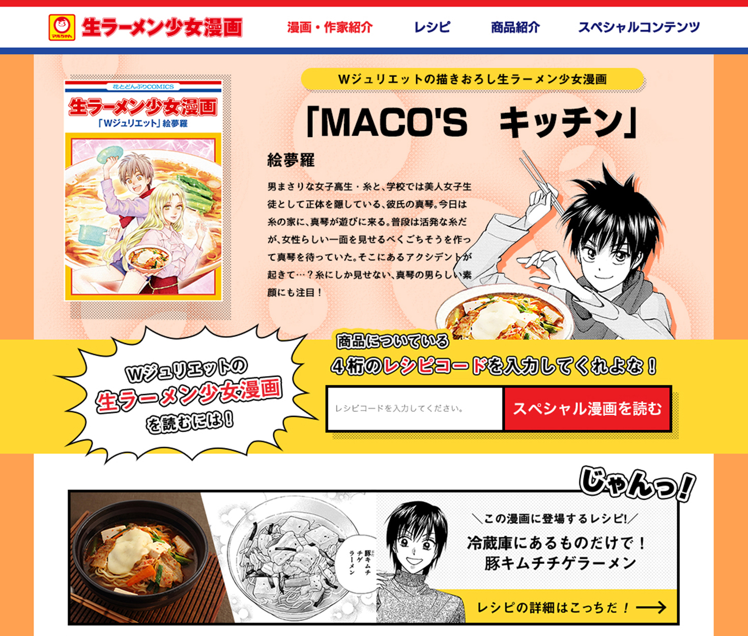 マルちゃん「生ラーメン少女漫画」は、東洋水産と少女漫画を数多く発刊してきた白泉社の強力タッグにより 創刊された新感覚の少女漫画サイトです。 コンセプトは"君と、なまめんのときめきを一緒に"。 「Wジュリエット」・「S・A(スペシャル・エー)」・「パタリロ!」の人気少女漫画の3タイトルの 原作者が今回のために描きおろしたオリジナルストーリー! 大切な人と一緒に生ラーメンで食卓を囲みたくなる、新感覚の"麺キュン"ストーリーをお楽しみください♡ ※2018年11月をもって終了しております。