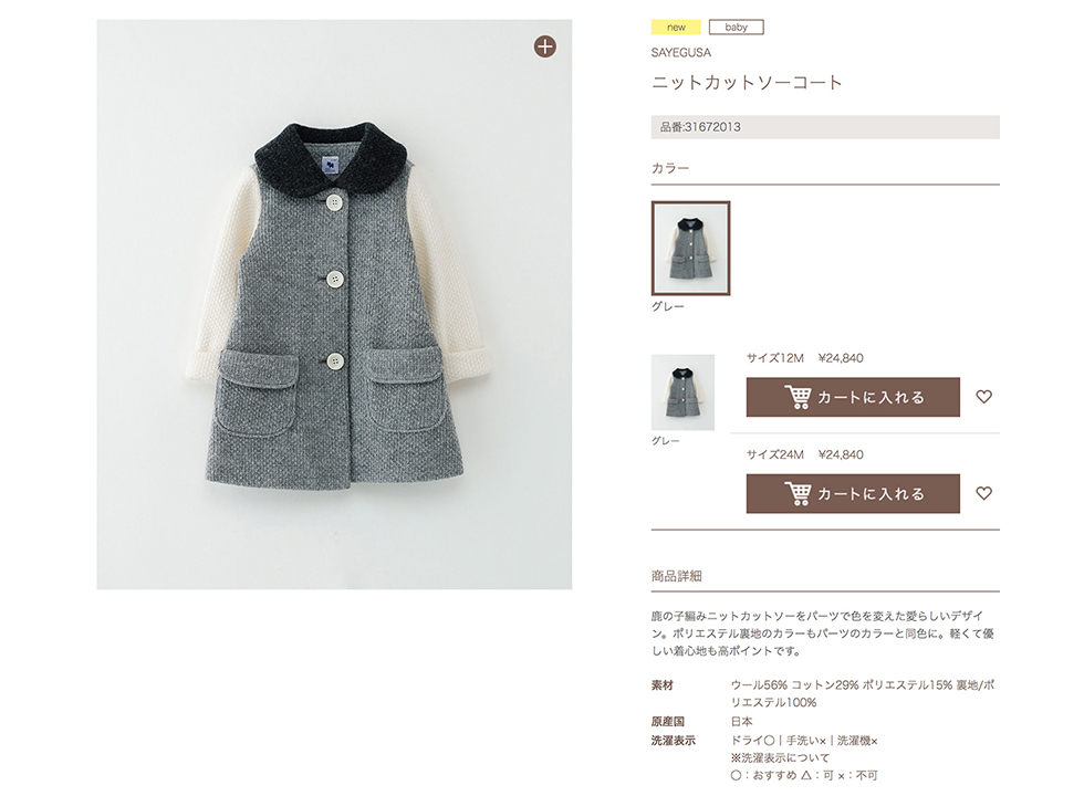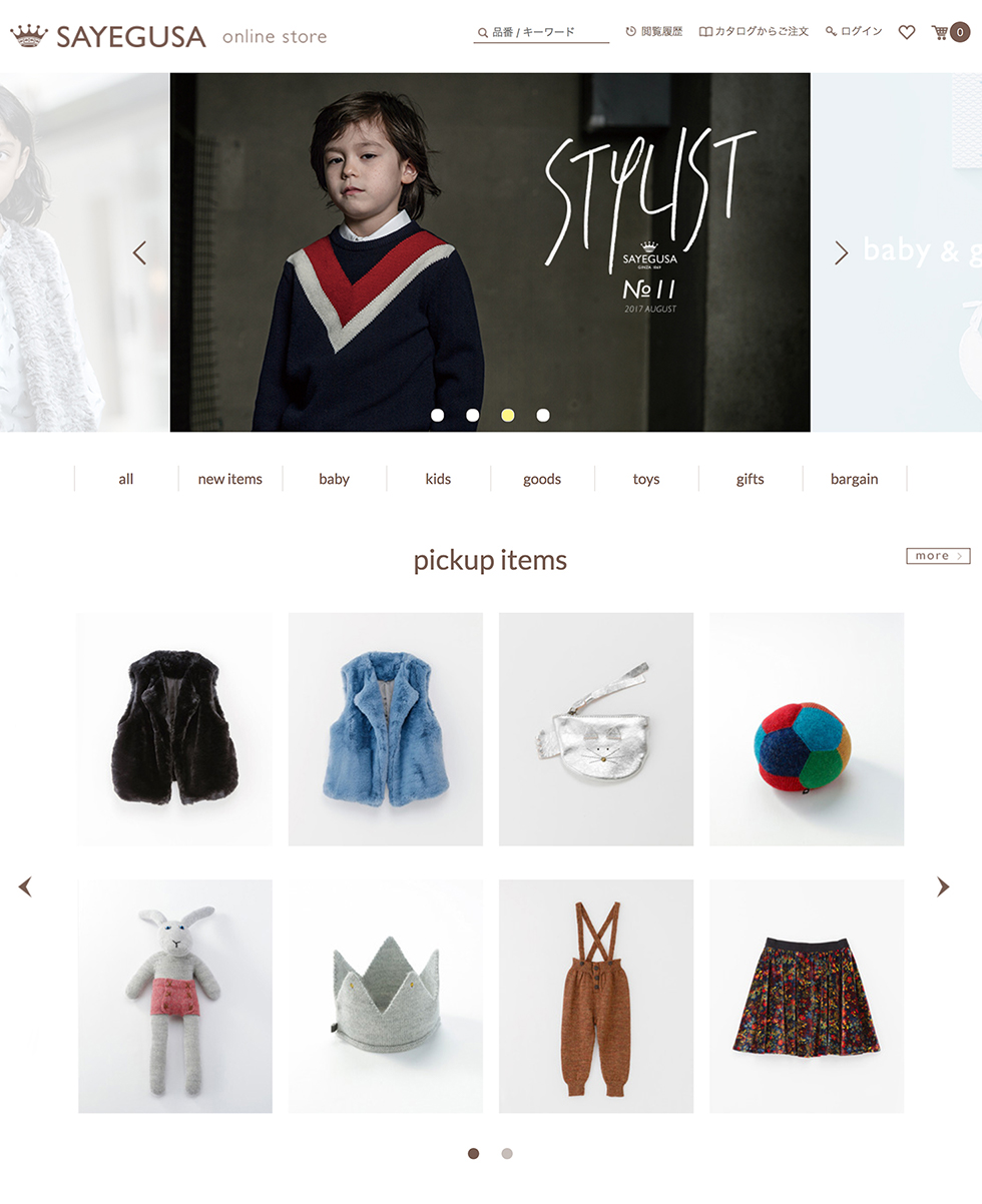 1869年(明治2年)の創業から、時代の流れを捉え、 子どもたちのスタイルを提案し続けてきた《ギンザのサヱグサ》の、オンラインストアをリニューアルしました。 多様化するファッションシーンのなかで、「変わらないスタイル」とトレンドを捉えた「先進的なスタイル」を 発信し続けているオリジナルコレクションとインポートコレクションブランド。 そのアイデンティティを大切にし、デザインしました。 ユーザーニーズを考慮したお気に入り機能や、ギフトラッピングフローなども追加し、 オンラインストアとしての機能も充実させることができました。