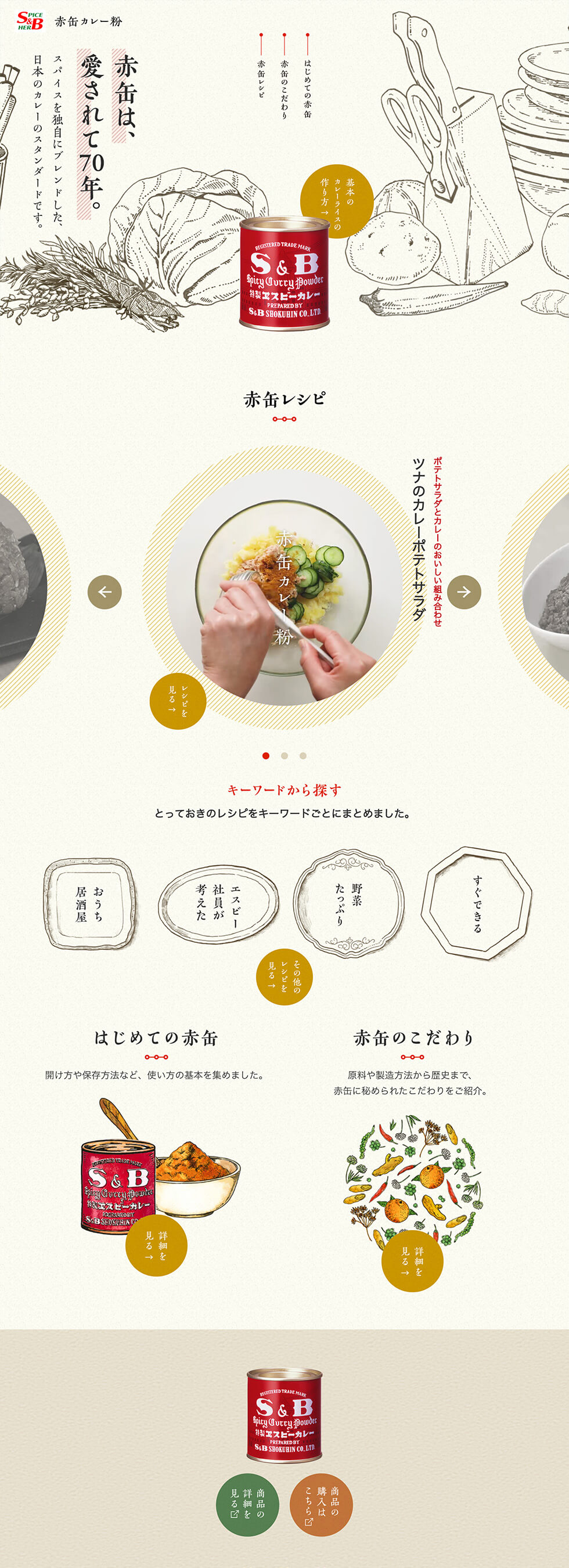 缶の独特で変わらないパッケージイメージを活かしつつ「レトロおしゃれ」をサイトコンセプトとして、懐かしいけど新しいサイトデザインを展開。材料からなどの検索だけではなく、シーンに合わせたレシピ検索を親しみやすいイラストをベースに提供。スマートフォンでさっと見られる動画レシピや親切な開け方動画なども載せることで、新たな赤缶ファンの獲得も目指しています。