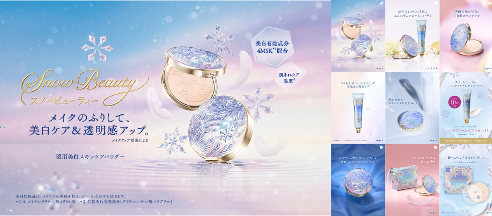 世界観の再構築と機能理解の深化。認知からトライアルへと繋ぐ統合デジタル戦略。 資生堂「スノービューティー」のプロモーションを担当。ビービーメディアでは、ブランドサイト、SNS、リール動画を連携させた統合デジタル戦略を策定。ブランドの世界観を意識しつつ、本格的な美白機能への理解を深めるコンテンツを設計することで、ターゲットの購買意欲を醸成し、トライアルへと繋げるコミュニケーションを実現しました。 ◉ ブランド体験と購買意欲を両立する情報設計 ブランドのトーン&マナーを維持しつつ、商品の機能的価値を理解し購買意欲を高める情報設計を実施。モバイルファーストでUI/UXを刷新し、情緒的な体験からトライアルへと繋がるコンバージョン導線を構築しました。 ◉ ターゲットの共感を呼ぶUGCライクな動画クリエイティブ ショート動画では、広告感を払拭しターゲットとの心理的距離を縮めるため、あえて作り込みすぎない“UGC(User Generated Content)ライク”な表現を採用。ブランドの世界観は維持しつつ、ユーザー投稿に近い「ネイティブな質感」でSNSプラットフォームに最適化しました。これにより、情報の自然な受容と共感を促し、エンゲージメントの最大化を図ります。 ◉ デジタル接点を横断するブランドストーリーのビジュアライズ 「氷の羽の Snow Lake」というコアコンセプトを、WebサイトからSNS、動画の細部まで一貫して反映。各デジタル接点を横断して世界観をビジュアライズし、ユーザーのブランド体験を深化させ、強いブランド想起を促しました。