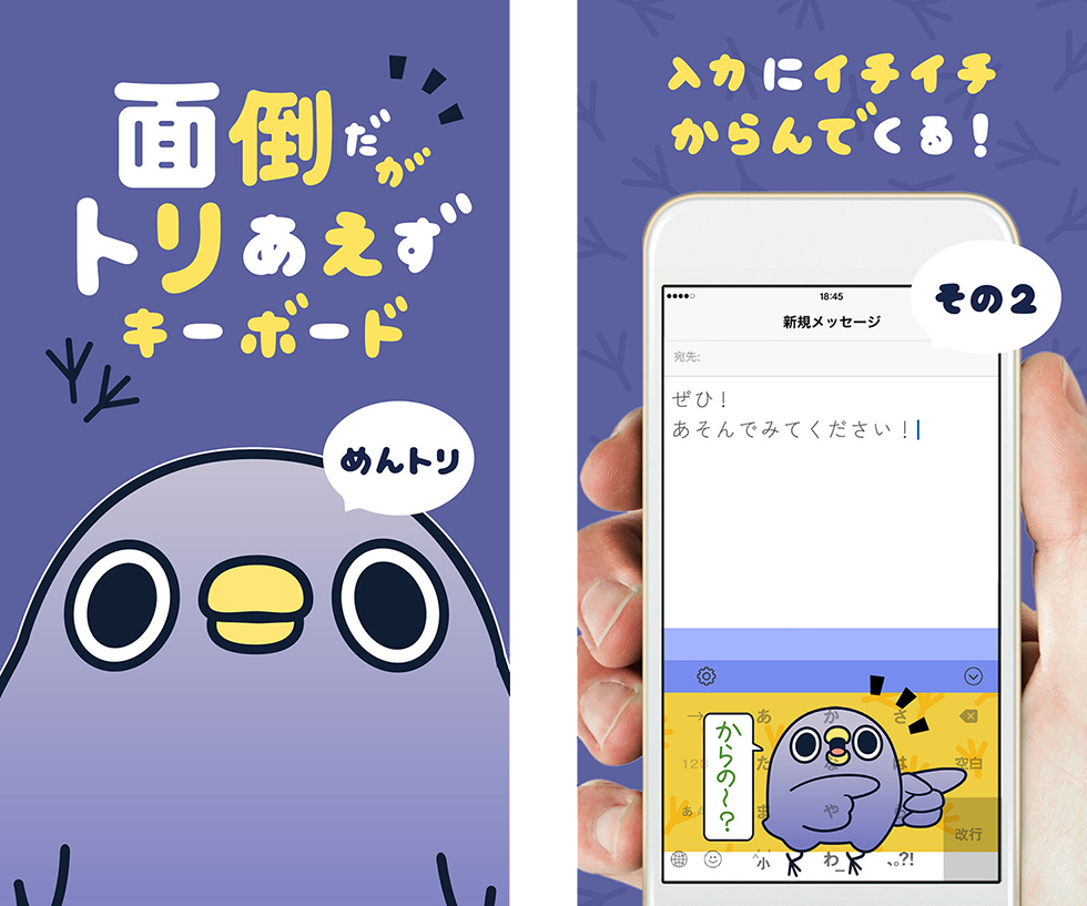 キー入力に合わせてキャラクターがさまざまなアクションをする、 今までにないスマートフォン向けのエンタメキーボードアプリを開発しました。 キータップやスワイプに合わせてキャラクターが動いたり、 入力した文字に反応したり、思わずさわりたくなってしまうキーボードです。 キャラクターの名セリフを簡単に入力できる機能も搭載。 友達とのチャットもさらに楽しくなります。 とにかく明るい安村さんがおなじみのあのポーズを決める「やすむらキーボード」、 鉄コン筋クリートのクロとシロが動く「鉄コン筋クリートキーボード」、 面倒くさそうに、ごくたまにキレよく動く「面倒だがトリあえずキーボード」が公開中です。